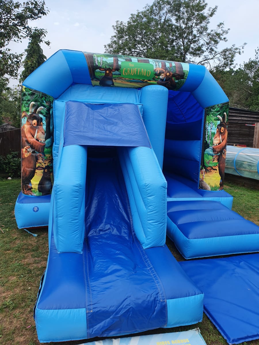 Gruffalo themed bouncy castle with a forward facing slide for added extra fun. This Gruffalo castle would be great packaged up with our Gruffalo softplay and Gruffalo ball pool with air jugglers. Suitable for boys and girls up to 1.8 meters. Fitted shower cover. Indoor and outdoor use. Please check the base colour you choose as these are velcro castles available in different colours. Available for over night hire for an extra £40. We will bring all the equipment needed with them. This will include the inflatable that you have hired, safety mats (where needed), pegs to hold the castle down outside on grass or sand bags for indoor use, extension leads, and an electric inflation fan. There must be access to a 240V mains power supply (general mains socket is fine) within 50 meters of the bouncy castle. Generators are an alternative where no electricity is available and are priced from just £40. Access Requirements: please note that a minimum of 3ft is required when moving the equipment through doorways and corridors. If you feel that access may be an issue, such as stairways or lift access, uneven surfaces, obstructions or perhaps long distances then please mention this in your enquiry. We deliver to a wide area across sussex and beyond areas included are, Thakeham, West chiltington, Pulborough, Storrington, Ashington, Billingshurst, Horsham, Petworth, Midhurst, Loxwood, Kirdford, Partridge green, Haywards Heath, Crawley, Worthing, Chichester, Burgess Hill, Littlehampton, Goring, Dorking and more. If your area is not listed then don't hesitate to contact us to check delivery. Some areas may incur a delivery charge.