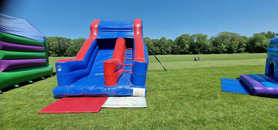 For hire is our awesome red and blue super slide this slide has a massive 10ft platform great for any party or event, climb up the easy to use steps to the top of this great slide then rush down at great speed from the top.