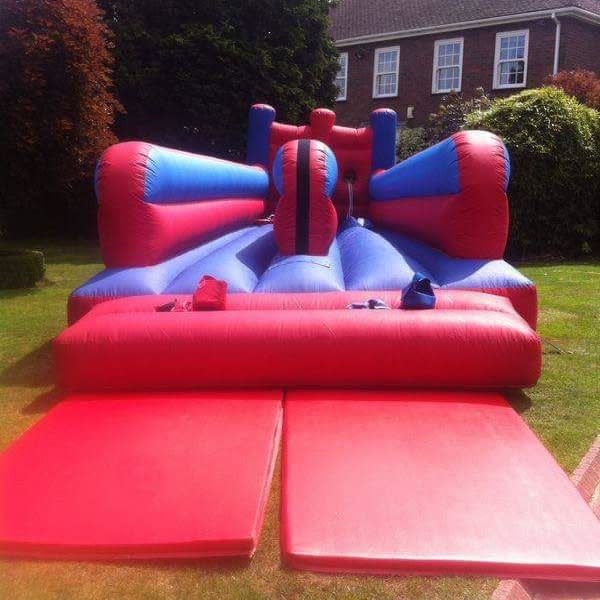 We will bring all the equipment needed with them. This will include the inflatable that you have hired, safety mats (where needed), pegs to hold the castle down outside on grass or sand bags for indoor use, extension leads, and an electric inflation fan.