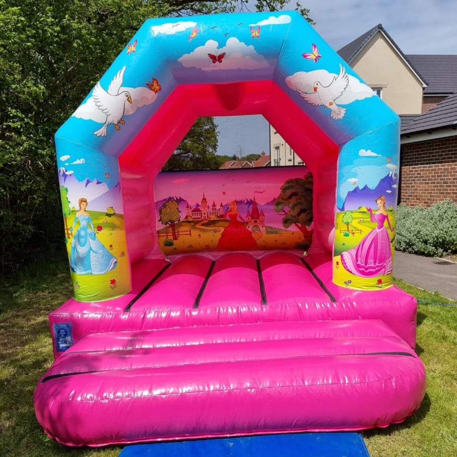 Princess themed castle. Suitable for your little princesses up to the hight of 1.4 meters. Indoor and outdoor use. No rain cover but ideal for lower hall heights. Also available for over night hire for an extra £40.