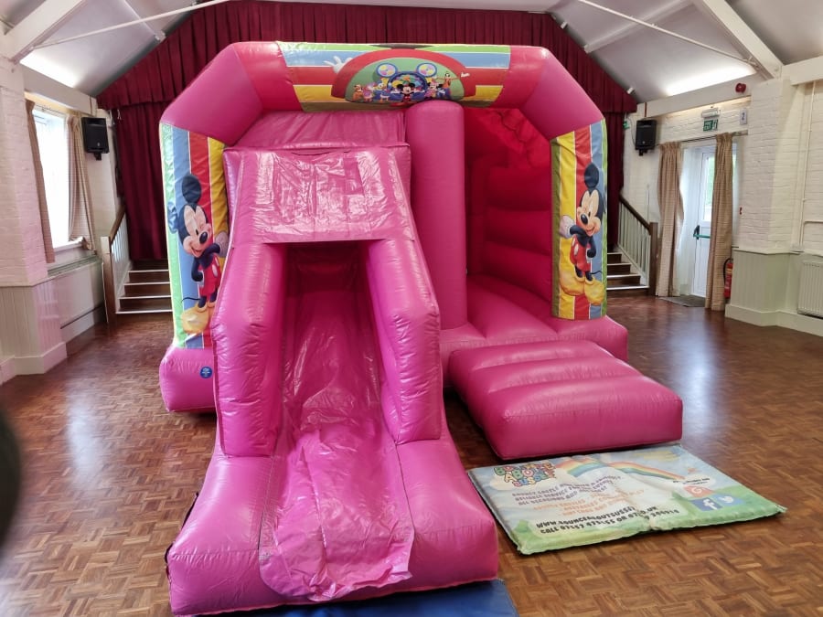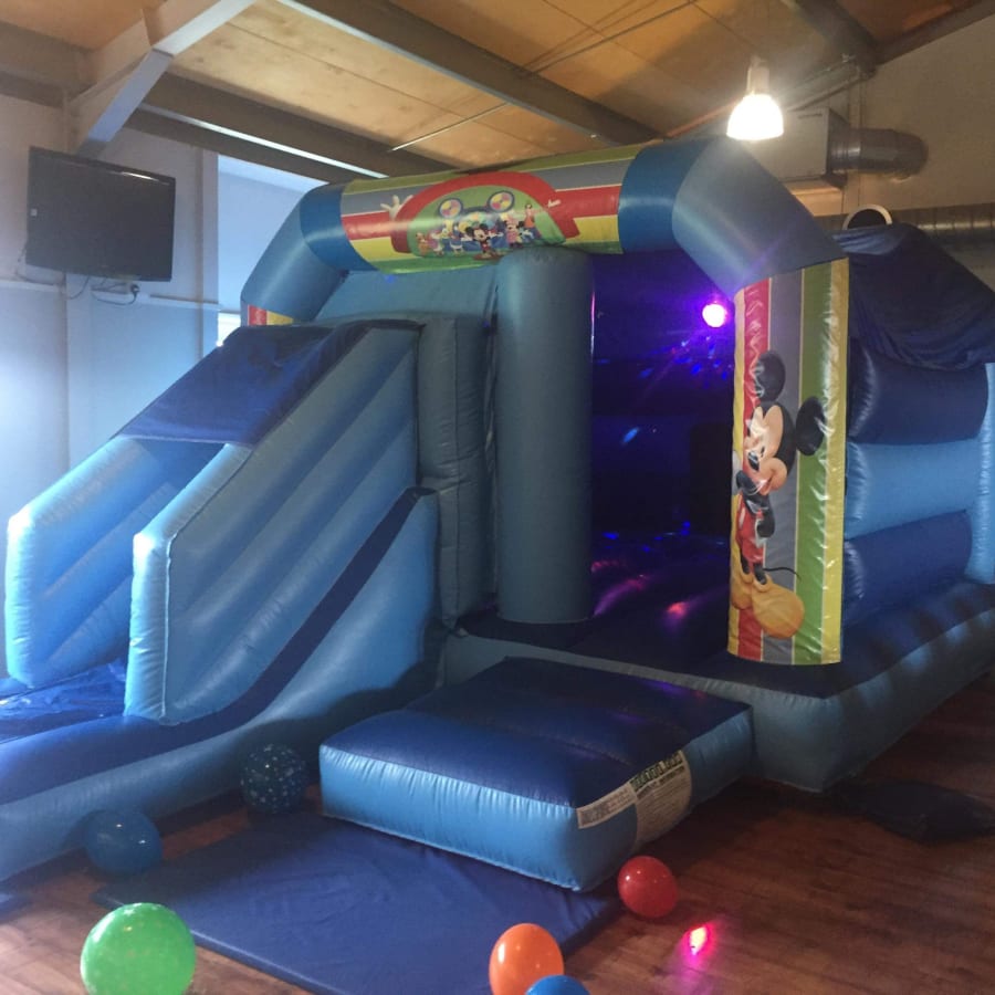 Mickey Mouse themed bouncy castle with a forward facing slide for added extra fun. Suitable for boys and girls up to 1.8 meters. Fitted shower cover. Indoor and outdoor use. Please check the base colour you choose as these are velcro castles available in different colours. Available for over night hire for an extra £40. We will bring all the equipment needed with them. This will include the inflatable that you have hired, safety mats (where needed), pegs to hold the castle down outside on grass or sand bags for indoor use, extension leads, and an electric inflation fan. There must be access to a 240V mains power supply (general mains socket is fine) within 50 meters of the bouncy castle. Generators are an alternative where no electricity is available and are priced from just £40. Access Requirements: please note that a minimum of 3ft is required when moving the equipment through doorways and corridors. If you feel that access may be an issue, such as stairways or lift access, uneven surfaces, obstructions or perhaps long distances then please mention this in your enquiry.