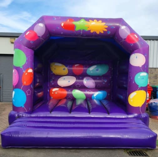 Here we have for hire our awesome purple balloon bouncy castle. Available to book online today.