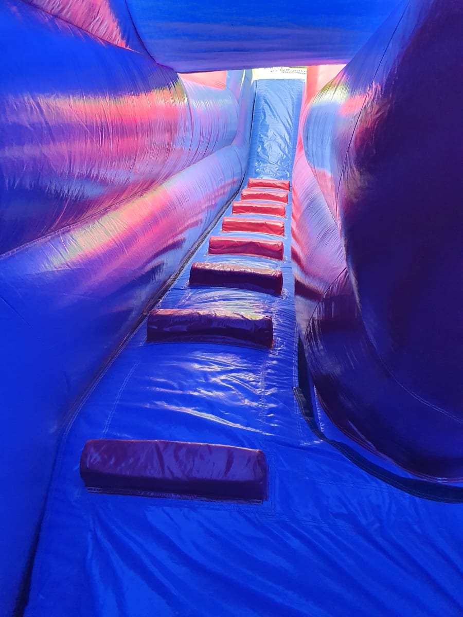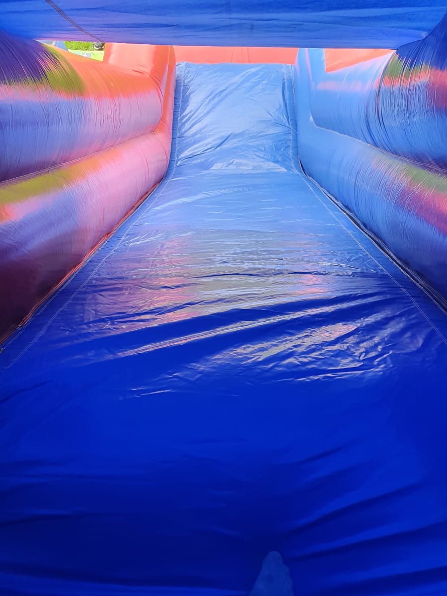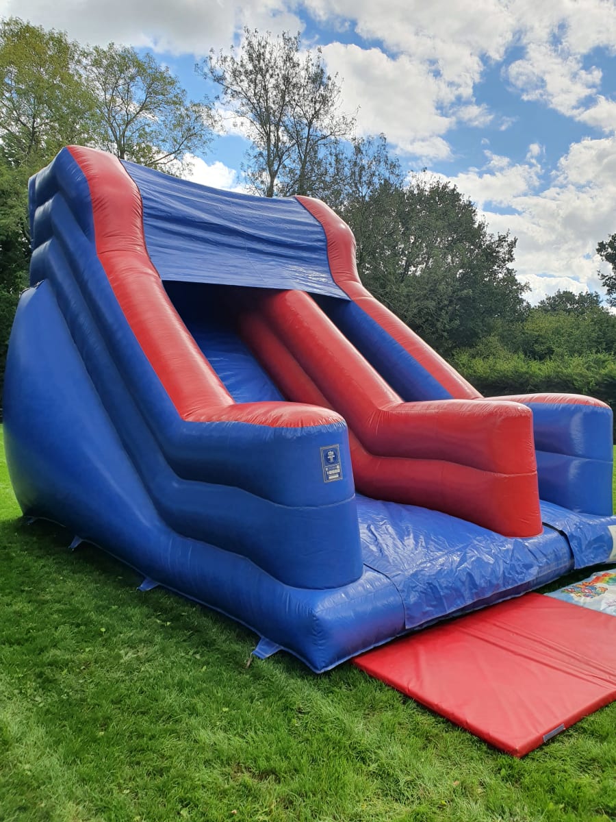 For hire is our awesome red and blue super slide this slide has a massive 10ft platform great for any party or event, climb up the easy to use steps to the top of this great slide then rush down at great speed from the top.