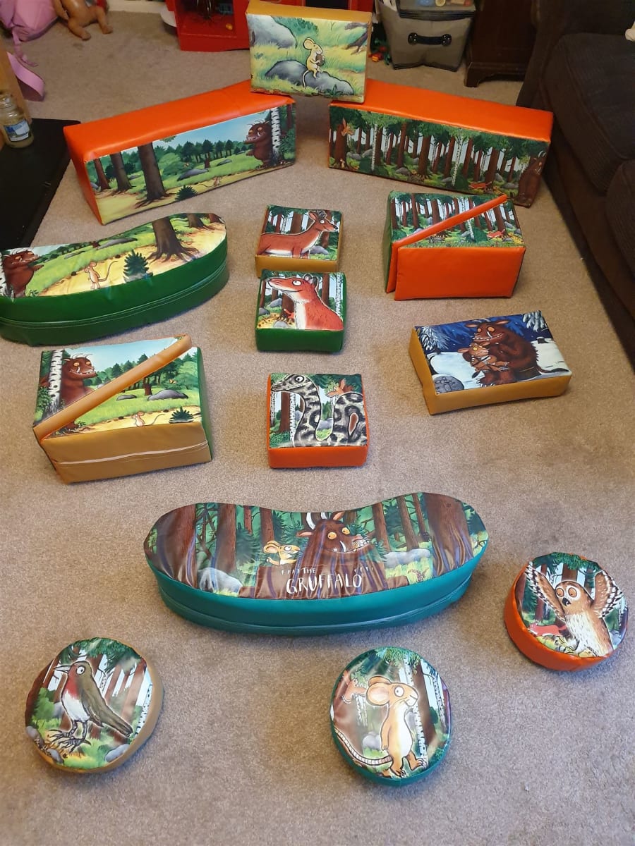 Our amazing gruffalo softplay set, 16 pieces of gruffalo themed softplay great for the little ones a great addition to a party, this softplay comes with 16 pieces, and soft matting to protect the little ones on hard floors. Our Gruffalo softplay can be booked on its own or as part of our full Gruffalo package available on our packages page Gruffalo softplay package.