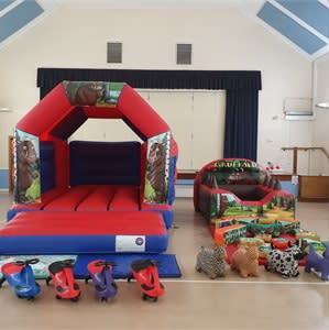 For hire is our amazing gruffalo package this includes gruffalo bouncy castle, gruffalo softplay, ballpool with air jugglers for that wow factor, 4 didicars and 3 animal hoppers.